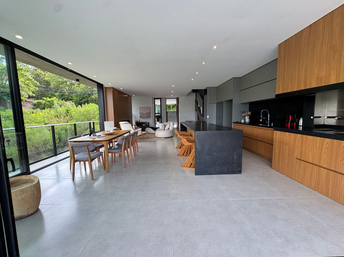 • Projeto moderno com linhas orgânicas e materiais atemporais